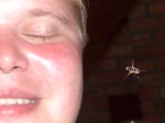 autos ausgerechnet immer den rechten außenspiegel angegriffen und dabei komplett zugeschissen hat. weiter gab es eine menge aufgebrachter roter ameisen, die vor dem zelt ihr unwesen trieben. basti wurde sogar von einer killerfliege angegriffen, wie das bild eindeutig zeigt. aber wenigstens die kröte war harmlos!