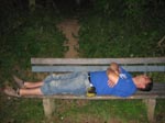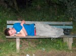 sei es wegen des alkohols oder wegen der späten stunde, aber der eine oder andere war doch irgendwann ziemlich müde. und die bank vor dem feuer lädt doch geradezu dazu ein, sich mal für einen