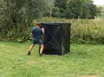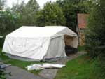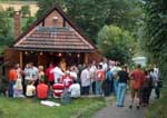 die ortsansässigen mitglieder des “Deutschen Roten Kreuz” stellten uns zwei große zelte zur verfügung. diese wurden am nachmittag in rekordtempo errichtet. anschließend wurden die stehtische verteilt, lichterketten und fackeln angebracht und auch schon das eine oder andere bier genossen.