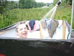 nach dem frühstück hieß es: frisch machen. die duschkabine war ja bereits aufgebaut, der wasserschlauch war schnell verlegt. dummerweise gibt es an der schöpfemühle kein warmes wasser. und so trauten sich nur ganze 3 leute unter die dusche. aber danach waren sie sofort wieder fit. die anderen begnügten sich mit einer “katzenwäsche”.