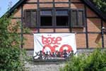 schließlich kam der tag des aufbaus und bastis vater überraschte uns mit dem riesigen böse-öse banner.