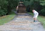 aber es gab auch andere nötige arbeiten zu erledigen. so hatte der schotterweg zum parkplatz reichlich viele und große schlaglöcher. “Meinolf Tewes” hatte uns kurzerhand mit einem radlader eine fuhre schotter vorbei gebracht und so konnten die größten löcher begradigt werden.